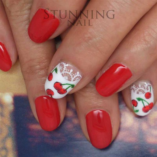 いずみです! いつもお任せアートのお客様、今回は赤ネイルということでチェリーアートにしてみました(^O^) フ…