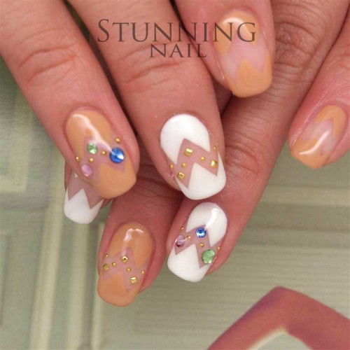 いずみです! 真ん中がクリアなギザギザフレンチ、スタッズとカラフルストーンで個性派アップ☆ ・ジェル ¥60…