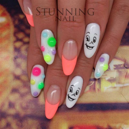 いずみです! いつも手描きイラストのお客様、今回はキャスパー風★ ネオンのストーンもカラフルPOPで可愛い~\…