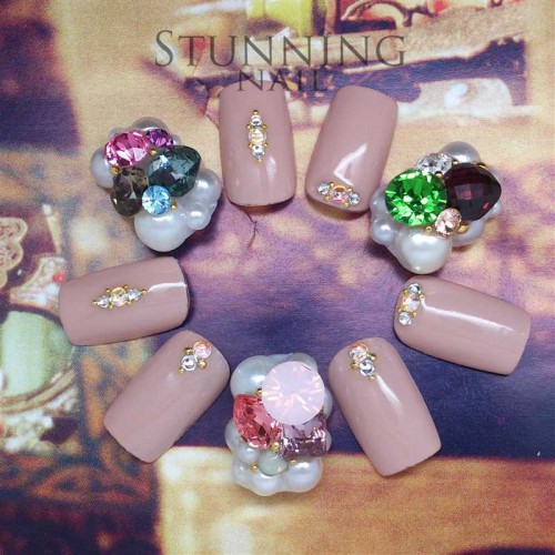 いずみです! 派手ピンクにキラキラビジューアートです☆ 5本とも違うアートが施されております! ハデカワ\(^…