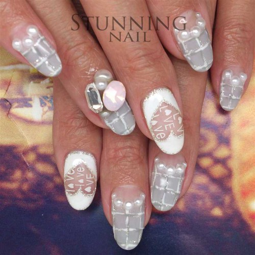 いずみです! ホワイト&グレーで春色ツイードネイル♪ Vカットのローズウォーターオパールもオススメです(*^_…